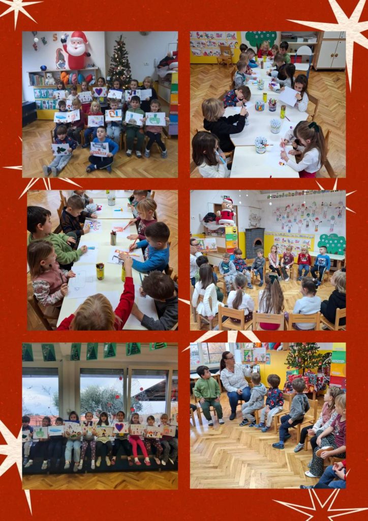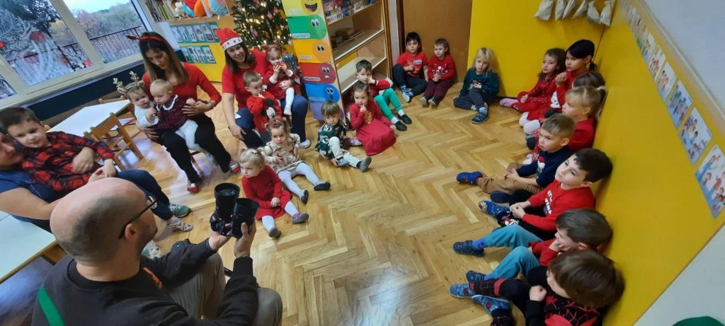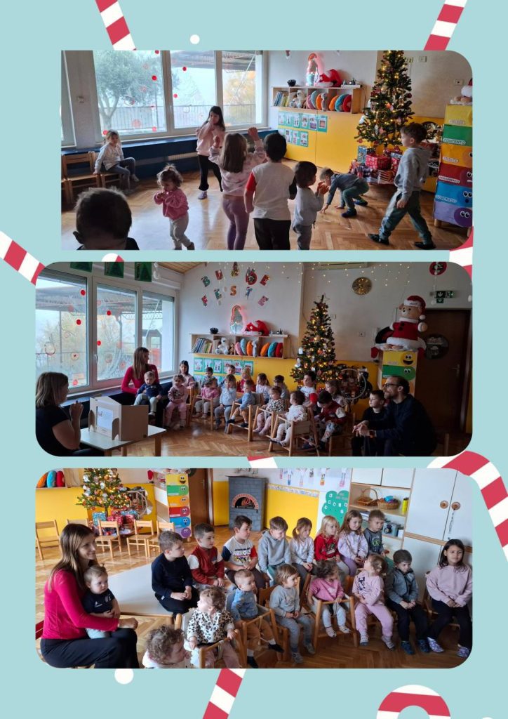 Martedì è stata un’avventura speciale per i prescolari, che sono andati a Capodistria, al Palazzo Gravisi Buttorai, per assistere a uno spettacolino tutto per loro. I compagni rimasti all’asilo hanno continuato i lavoretti creativi, portando avanti l’atmosfera del giorno prima. Nel pomeriggio ci ha raggiunto un’ondata di emozioni: durante la nostra ora aperta con i genitori abbiamo presentato la recita, recitato filastrocche e danzato il nostro balletto. Poi, con grande entusiasmo, abbiamo persino insegnato il balletto ai genitori! La giornata si è conclusa con un caldo brindisi e la consegna dei regalini di Natale.