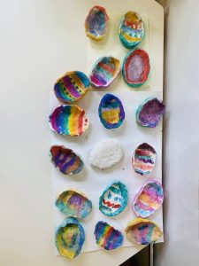 Questa settimana, le Coccinelle assieme alla maestra Valentina, si sono preparate per l’arrivo delle festività pasquali. E così…modella di qua, colora di la, stendi e strappa…voilà le opere d’arte sono qua!