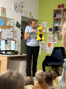Oggi alla scuola dell’infanzia abbiamo avuto una visita speciale: l’infermiera è venuta a parlarci della cura dei denti. Con giochi e immagini ha mostrato ai bambini come lavarsi correttamente i denti e perché è importante farlo ogni giorno.