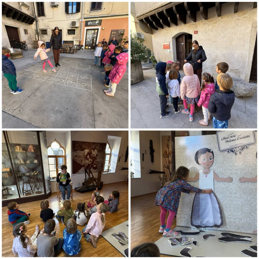 Oggi i bambini hanno visitato il Museo Etnologico di Capodistria, dove hanno scoperto com’era la vita delle generazioni passate: gli ambienti domestici, gli oggetti semplici ma ricchi di storia, e le abitudini quotidiani che oggi possono sembrare lontane. Hanno visto utensili, vestiti e strumenti di lavoro.