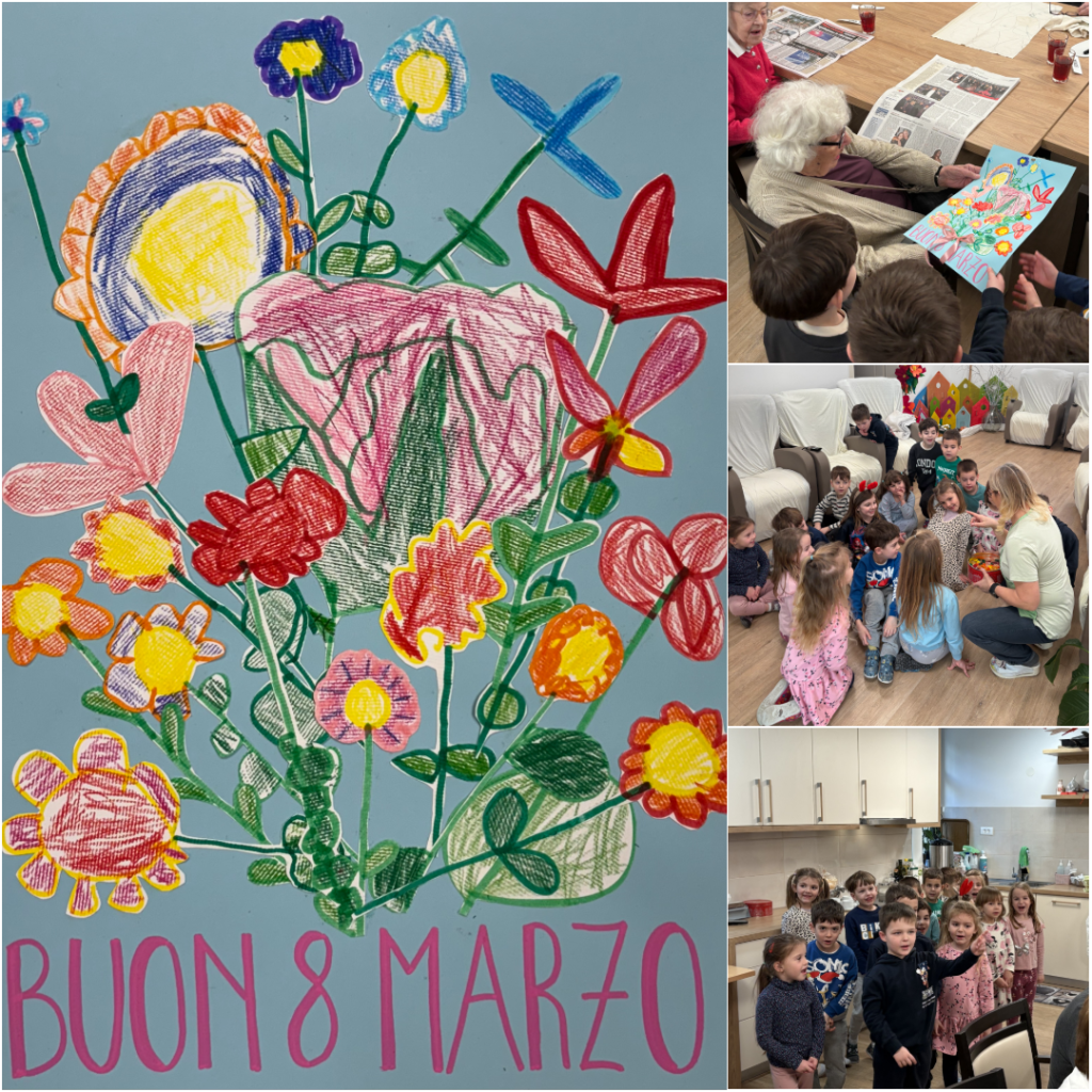 All’asilo abbiamo preparato dei piccoli pensierini per le donne che ci stanno vicino, alle mamme, zie e nonne. Inoltre, siamo andati a visitare il centro per anziani Sivka e abbiamo regalato un “mazzo di fiori”, creato da tutti noi, per rendere ancora più speciale la festa dell’8 marzo.