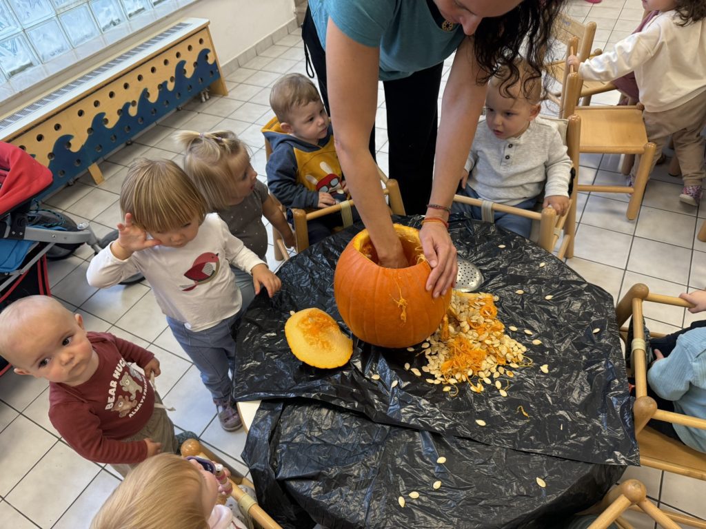 Giovedì, 30 ottobre, non poteva mancare il laboratorio di intaglio delle zucche, attività amatissima dai bambini.