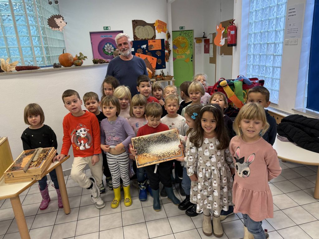 L’apicoltore ci ha spiegato come le api producono il miele e quanto siano fondamentali per l’impollinazione e per la natura. È stata un’esperienza educativa che ci ha fatto capire quanto sia importante proteggere questi piccoli insetti preziosi.
