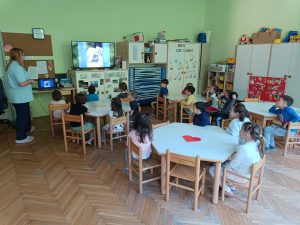 Oggi, 23 aprile è venuta a farci visita l’infermiera Katja della Casa della Sanità di Capodistria, che ha parlato in modo divertente e coinvolgente dell’igiene orale. Attraverso la storia “Ah, ti zobki” i bambini hanno scoperto quanto sia importante prendersi cura dei propri denti. Il momento piu entusiasmante? La dimostrazione del corretto lavaggio dei denti con l’aiuto di un simpatico draghetto che, spruzzando l’acqua ha fatto divertire e ridere tutti!